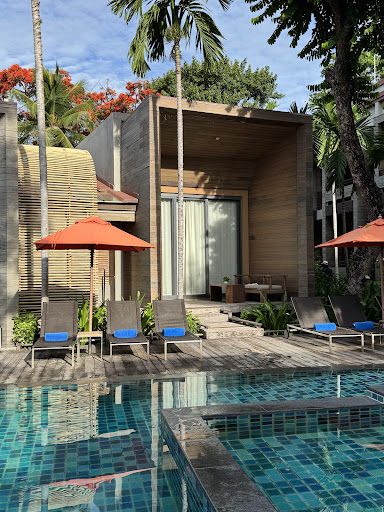 Overview Beautiful, lush resort right next to one of the best beaches on Samet island, Sai Kaew (in English, White Sand). Its large area was a surprise to me, as on the booking website they advertise mostly the modern luxurious zone. The main restaurant overlooks the beach and almost every day we enjoyed the beautiful turquoise colours, seen as well from our room 124! I liked the attention to little detail : room design with modular furniture, at the pools - the tents to create shadow, at the pool and beach – a phone to order food and drinks, etc.