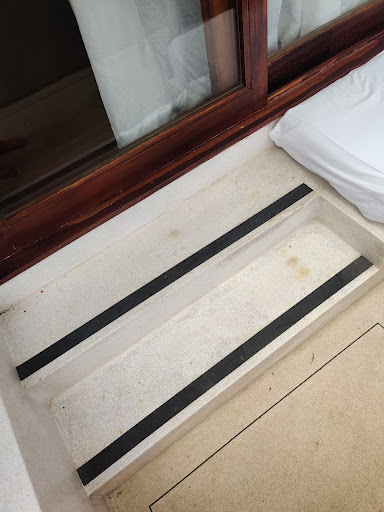 card reader in the wall immediately fell down. Two lights were not working, although sometimes they flickered. The water from the tap was dark brown at first. Openings between windows and doors leading to drafts and the doors slamming whenever there was some wind outside. The airconditioning shreeked at you when it was running. Outside bath was not watertight and couldnât be used. The toilet barely flushed. The toilet bubbled at intervals followed by the most putrid smell filling the room. The shower sneezed water at you at either scalding hot or freezing cold temperatures. One night we didnât get hot water at all, when we called reception and explained, she just kept asking if we wanted tea delivered to our room. The room was cleaned okay, but not all items were properly restocked. The towels sometimes smelled like fuel. We did get free drinking water daily.
