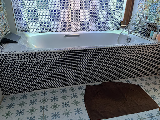 The website also says ânewly renovatedâ suites. Iâll attach the pictures but Iâm pretty confident this was not recently renovated. The tile work looks like they ran out of tiles and spread them out in the grout. The tub is falling away from the grout. The dimmer didnât work in the second room, neither did the bedside lamp.