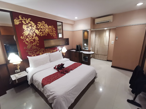 Read moreWe needed a place to stay close to the airport as our flight was early in the morning after a nice time in Bangkok, Pattaya and a long week in Koh Chang. We did decided that it was only to rest before our flight. First off, it is in a sketchy area so be careful. We did not know this as we booked online. When we first walk in the door the mildew smell took my breathe away. The front desk was not friendly at all. We didn't get there until late as it was a 6 hour drive from Koh Chang, so we felt we had to stay. There is no elevator and we were on the 4th floor. Staircase very narrow. The room wasn't bad but the bathroom was not great. We went into the city for the evening so we were not there long just a few hours after the city to rest before leaving in the morning. When leaving in the morning the front desk (different person) was not friendly again at all. There was a HUGE cockroach laying right next to the front desk. GROSS! They do have a shuttle to the airport that only leaves every hour on the hour. That was convenient for us. I would not...