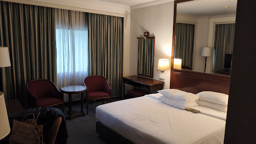 I arrived at the hotel, walking from the airport train (a ten-minute walk away if you walk briskly), to find the grand lobby calm and peaceful, but very heavily scented with some room fragrance. Was the purpose of that to conceal something? Strange. But the friendly receptionist spoke good English and checked me in quickly. I got my room right away at 1.30 pm.||My room on the 17th floor felt like travelling back in time to 1988 when the hotel first opened its doors. They might have painted a little here and there, and changed the flooring, but other than that, everything was still in its original condition, accompanied by a musty, damp odour. Nothing was broken and the room felt clean but definitely outdated. It was also rather small for the four stars that the hotel claims – three would be closer to the truth in 2025.||The bed was a bit on the hard side but I slept well nevertheless. Needless to say, there were no sockets by the bed – who needed those in 1988? They had added two multi-sockets (US/UK/Europe) to the desk, but those had already become so loose that my laptop charger kept falling out of the socket. The room came with a desk, chair, armchair, luggage rack, fridge, safe, two 0.5 L water bottles replenished daily and A/C that did not cool down the room more than to 24 degrees. Wifi was easy to use, fast and reliable. I see many reviewers complaining about the wifi, but I had no problems with it.||The bathroom was equally outdated, but came with a bathtub that filled quickly. The wall-mounted shower had excellent water pressure. No handheld shower available. Amenities included shampoo, shower gel and body lotion in single-use bottles, which I find a lot more hygienic than the wall-mounted containers some hotels choose to put on their walls to save money. Slippers were also provided.||A buffet breakfast was served in the lobby restaurant from 6 to 10:30, the cost was 400 THB, but I did not try it. The restaurant also served lunch.||The swimming pool (7 am to 7 pm) on the 4th floor was small, cold and uninviting. Do not choose this hotel if you want to enjoy a swim.||The location is great for shopping (Centralworld and Gaysorn Centre next to the hotel) and for public transport (skytrain, water buses and the airport train all close by).||I paid 76 EUR/night for what I consider a three-star hotel. Would I stay again? Probably not. There are better options close by that offer the same level of comfort...