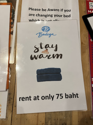 Also the “stay warm” rent a blanket thing was weird even for a cheap hostel. It’s kinda their one job to give people blankets.
