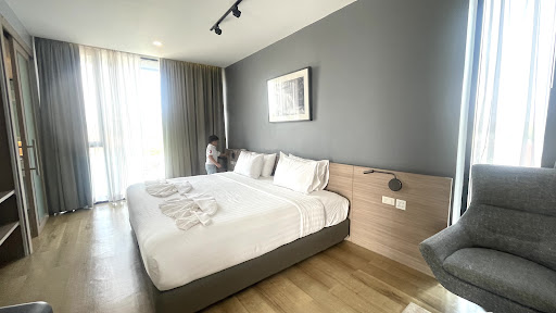 Read moreWe went to R photo hotel based on the review. A brief family vacation to Nakhon Phanom for two nights. This was a budget hotel at best which managed like low cost airline. We booked and stayed in the suite (“large format”type of room Baht 1990 per night). The hotel decorated with all kind of cameras as photogenic spot. |I figured with two adults and two kids. It should be perfect. The room was large with jacuzzi. Unfortunately the water pressure was weak so it took ages to fill the jacuzzi. |The bed were two single beds made into one. That was too small for four. A charge of Baht 350 for extra bed. That was fair. But an extra towel would incur Baht 50. That was a bit fastidious. |If your kid accidentally wet the bed, it would be Baht 500 cleaning fee for bed sheet and bed guard (topper) For this, it was a bit steep. |Breakfast was adequate. Hotel restaurant and cafe were good enough but again a bit pricey. |There was no pool nor view to enjoy. |All in all, it was good enough only for a brief stay or...