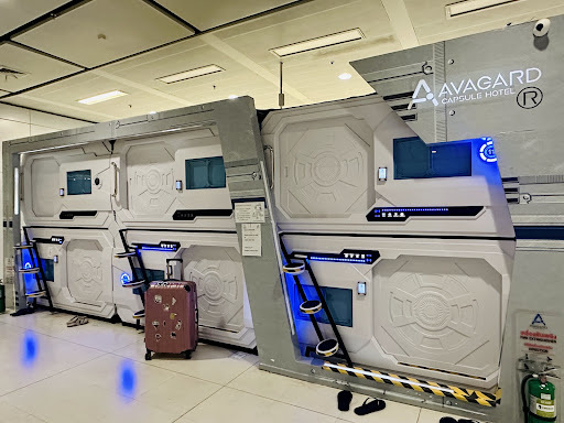 Read moreStayed here in July 2024 as a couple. About 5-7 minutes walk into the Bangkok Suvarnabhumi airport where you can walk around to various restaurants, shopping centers, metro station in the basement area. We reached by flight towards morning and were able to easily walk to the hotel with heavy bags. Our main purpose was to store our luggage and explore the city before our international flight back. Waited a while for check-in as no one was around, then configured the lock pin, and could leave our luggage in the storage and go sightseeing. We came back around 5pm and checked out. ||A nice, clean, compact capsule with basic amenities. Overall, a very short stay and would recommend staying here if you want to sleep for a few hours before your flight or leave your luggage safely as this was just perfectly located in the airport, decent capsules and value for money! Thank you Avagard Capsule hotel and we would definitely...