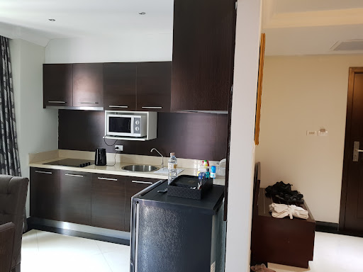 Stayed on fifth floor. The room was big and comfortable. Plenty of storage space. Electric outlet on both sides of bet but had to disconnect lamp on the other side to have access. Bed was good with four pillows and Ottoman sofa/chair at the end and also a chair on the other side. Microwave and kettle plus dining plates and soup bowls, forks and spoons in the cupboard. The shower was good. Room and hallways kept very clean. The swimming-pool on the roof was great with nice breeze but could use some fixing up and a good paint job here and there. Many of the tiles in the pool starting to fall of and the the sun-beads either broken or without mattress. The waterfall/rock fixture in the pool probably stoped working years ago and is broken down and needs to go. The elevator also could use some paint job. Laundry opposite the entrance with coin machines also if you prefer to do it yourself cheaper. Little further that way are some good restaurants and barber shops on the alley (Pattaya Klang 9 Alley) leading to Central road and there on the corner is a great little Pizza place (Pizza n pizza Pattaya). Two minutes walk to Soi Buakhao with all the entertainment and restaurants you can think of and only 8 minutes walk to Central Shopping Mall. All in all very good place to stay, for a good price and perfectly situated in the centre of Pattaya but without a through traffic in front of the hotel. Just need a little TLC...