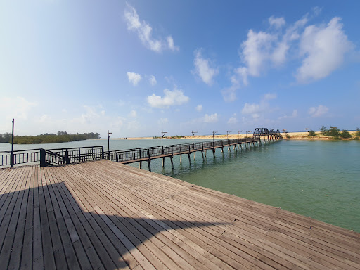 The beach is basically private. The afternoon we went there, there wasn't anyone else around (which also means no life guard). The walk there on the wooden dock is a little precarious because the dock is old and missing some slats.