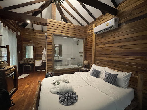 ที่พักน่ารัก ขนาดเหมาะสม ชอบที่มีอ่างอาบน้ำในห้องด้วย ข้างนอกสามารถนั่งเล่นได้ บรรยากาศดี ไม่ค่อยมียุง แต่ภายในห้องทำความสะอาดไม่ค่อยดี มีฝุ่นบนโต๊ะ และมีกลิ่นอับ ส้วมมีกลิ่นตั้งแต่ตอนเข้าพัก อ่านรีวิวของคนหน้านี้ก็มีปัญหาแบบเดียวกัน