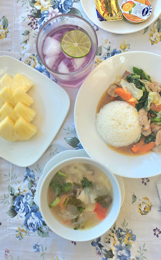 She asks my plans: I will take early taxi to airport which she offers to arrange for a pre-paid fee - great. She tells me I should walk Grand Palace & absolutely no taxi or Tuktuk - ok thanks for information. We go to my room - I turn the AC on so that is better. Small older room but works, & seems clean. This "city view" room in my case was the not nice alley in the back of the hotel with another building windows I can see into & I could toss a can at so close. Curtains shall stay closed. She goes after sharing a lot more of her thoughts & settle myself. I head back down stairs, "the kitchen" was not able to provide a snack but the welcome drink of butterfly pea tea is available - I drink it up like I have a pipe for a throat because I am so thirsty: I don't drink alcohol, soda, & stuff out of plastic bottles either, so was very thirsty. She comments on how I drank. I proclaim the tea delicious! She says "I made the tea ... myself." Ok … so all that about “we can't give you food or drink you paid for because kitchen is closed”, "not sure if I can get you a drink because kitchen is closed" stuff - what!?! She gave me the receipt for the cab & let me know that I am going to have to start calling the “lazy Night lady” about 4:30am repeatedly so she can come unlock the front door. She will have a lunch box waiting for me on the front desk & describes what will be inside it - cool. But mixed in . . . was other stuff - I did not need to hear about her various problems with the owner, the "lazy night lady” who is paid more, her personal challenges, her mother's hospitalization, the loneliness of it all, etc. I checked into this hotel by myself so I am easier prey for this stuff, plus I am way too kind on too many levels. But hey this lady & many others are teaching me little by little to not care. I was an emotional wreck. Did not have energy to take more of others’ burdens. Anyway, I go to the palace. Almost miss it entirely because of a very thorough & elaborate "different strangers" 3-person coordinated attempted scam while walking there. Scam seems specifically dependent on tourists who walk that back wall along Tha Suphan Alley. SO: Walk on the tourist shop side = get bothered constantly OR walk Palace side = possibly get completely derailed from ever achieving the goal of your journey. Grand Palace & Jade Buddha amazing - I had tears during prayer. The love, care & attention to beauty in devotion is astounding. I get back & lady immediately asks how was my walk & I tell her that I was almost scammed into getting into a ride that would’ve been really bad for me. She is NOT surprised at all & asks for more details - repeatedly! Creepy grin on her face. I don’t deal with Night Lady. 4:45am rolling my luggage, drop my key, unlock door, check for sandwich box (don't see it)...