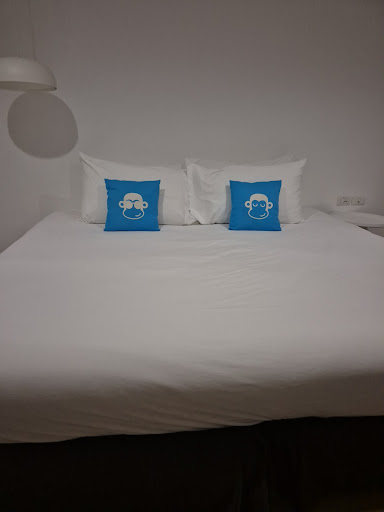 However, Blu Monkey blew us away with more than what they offered. The receptionists were helpful and friendly, there was a nice TV in the room with HDMI cable (which we used to connect our Apple TB), the WIFI was of high speed, the sheets were very clean on relatively firm beds, and there were 2 pillows on each bed.