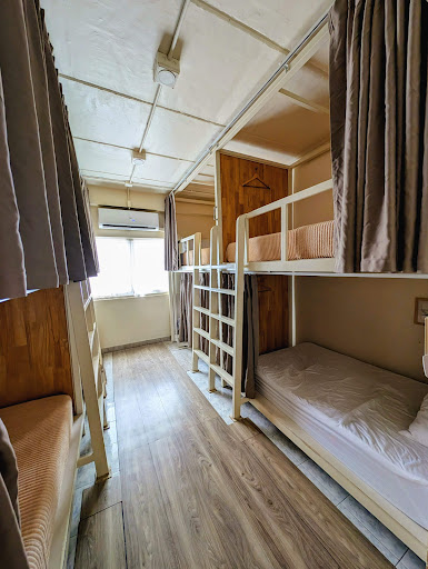 For one room there are 8 beds. There is a socket to charge the cellphone battery. Towels, blankets and pillows are provided. The mattress is quite soft and there are curtains. Each floor has a locker, but we didn't use it. You will not feel hot, because AC is work!