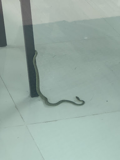 Na in ons villa'tje te zijn gebleven en even hebben gezwommen wat verder gewoon prima was waren wij benieuwd naar de plek verder, dus zijn we naar het algemene zwembad achterin gelopen. Hier begon alles bergafwaarts te gaan, er was echt helemaal niemand te bekenen, overal stonden borden met andere hotel/resort namen? Alles was vergroeid, er zaten gaten in de vloer achterin bij de schommels, er stonden blikken verf open, overal lag was en tot onze grote schok troffen wij in een soort ontbijtzaal een slang aan.
