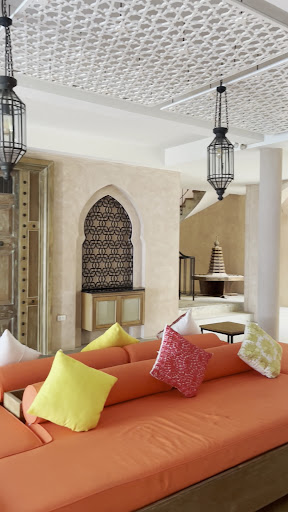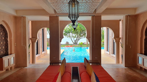 Moroccan themed building. The owner must be from there, otherwise how else did they get such authentic furnishings. The room (ginger) was spacious, the shower was good, the furnishings were good, it was quiet too. The staff were SO nice, i feel like they were hand picked. They made us feel fantastic. The food was fantastic. The Shakshuka was to die for, I want to come back just for that alone. The swimming pool was gorgeous, and relaxing. The beach was quiet but not too quiet. There is a little bit of plastic here and there, but not really bad and certainly not the hotels fault.