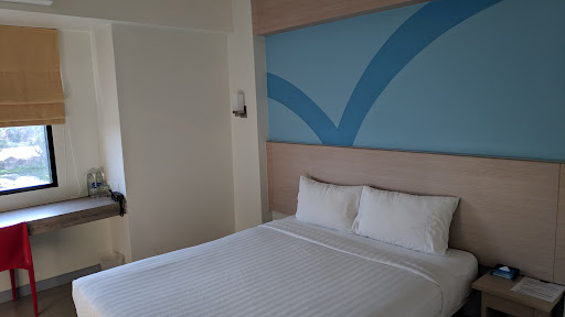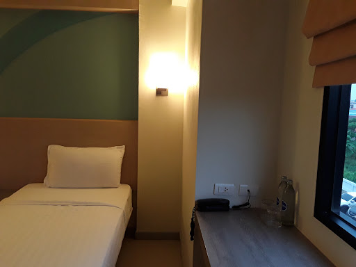 What a fantastic modern hotel only 20 minutes by car from Roi Et airport and close to Roi Et town centre using transport. ||||On site security attendant who sits in car park through the night, Entrance to the hotel has both stairs and ramped with good size double or twin rooms with TV and ensuite, unfortunately, no family room, however, the staff at reception ensured that our rooms were across the hall from each other.||||The Hop Inn is room only with self-service pre programmed machine between 06.00 and 10.00 and a chest freezer with microwave for (payable) quick meals.||||Hop Inn's are popping up all over Thailand and for 500 baht per room per night, it's FANTASTIC for passing through, being on business and or using Hop Inn as a base camp when touring...