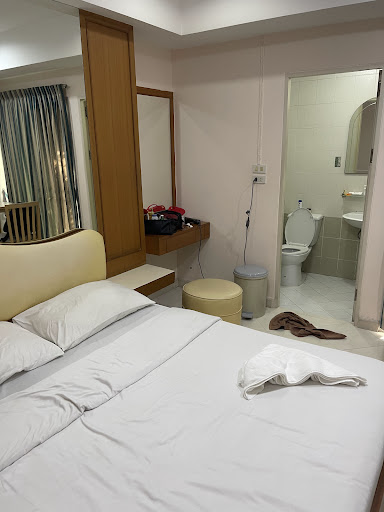 I booked here for no particular reason (it was a bed) The staff here were very obliging but do not speak English, this is a very Thai area, with a few Burmese, the room was serviceable with a clean, comfortable bed, a security frame over the balcony, the TV worked fine (although old) but only 4 news channels in English, A/C worked well but needs a clean/ service, bathroom slightly mouldy but normal for price bracket, good wifi in most of the building, massive parking that was all but empty when I stayed, if you stay here be sure to keep the address and phone number on you as taxi drivers do not know it at all. The hardest thing here is to find ANY English food, coffee, or ANY restaurant with A/C, most restaurants are very local type (open fronted, and plagued by flies), the food is great but you will compete with the flies to eat it, if you are not put off by that you will experience some of the best tasting Thai...