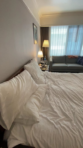 The hotel provides a few desk and floor lamps to compensate, but some may still find the lighting a bit uneven or not quite bright enough — especially if you need to do work or read a book in the room at night.