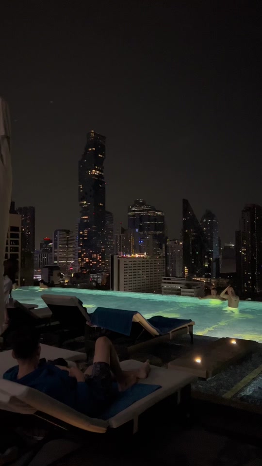 The pool is very nice and clean. You can relax and view all of the city of Bangkok and order drinks and food to your chair.