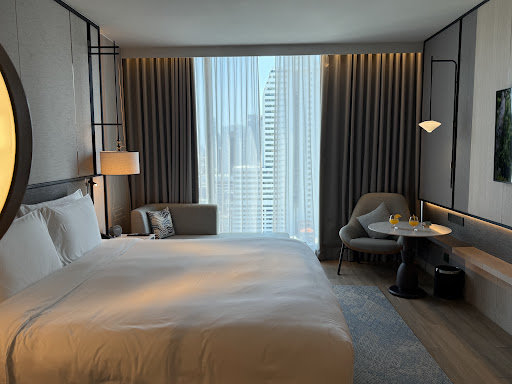 🛏 Room & Comfort – I stayed in the Deluxe King Room, which was beautifully designed with a stylish and cozy ambiance. The bed was exceptionally comfortable, and I loved how the partition in the bathroom area made the space feel more open and seamless. Plus, the city view from the window was stunning, especially at sunset!
