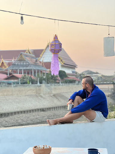 Originally booked 2 nights, stayed a 3rd, wish we booked a later bus as we wanted to stay another night. The lovely ladies didn’t speak English but had their sister on FaceTime who spoke very good English. They have a nice restaurant in house where the owners will cook up for you, otherwise right next door has a good breakfast with fresh juices aswell. They booked us a tuk tuk but it was stolen by some other guests, so they put us on there bikes with our big backpacks and we rode to the bus terminal. It’s close to restaurants, bars, 7/11 and night markets. There’s a bike rental near the bus terminal (10minute walk) where we rented a bike to take into old town and up north. There’s also this adorable little cat that’s super...