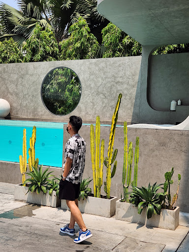 There's a "pool" (tank) which I think is more for posing than swimming, so don't pack your goggles. But I do think the owners are quite clever to install the pool rather than put up plants or sculptures. People come to stay, pose and post and it draws attention and maybe more business. It's certainly more costs effective than a full size pool...