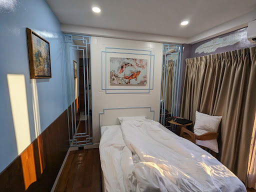 Daily room cleaning and self-service laundry services are available. The air conditioner, Wi-Fi, and hot water worked well.