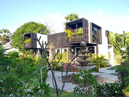 Read moreOnly one word for this place - funky. Funky eclectic selection of rooms, from concrete bungalows (34 sq to 56 sq meters), to shipping containers stacked upon one another 12 to 15 sq meters). I stayed in a "cozy room" container (15 sq m) on the 2nd floor, overlooking the pool. Nice view. Room was very basic, but had a TV, fridge, kettle, AC, hot water, a small set of shelves, and a small balcony with table and chairs. The room also had many small touches that added character, which is a nice change from sterile hotel rooms. To access the balcony though, you have to crawl over the bed, a bit tricky with a laptop and cup of coffee. Missing was a wardrobe, stowage for a suitcase, workspace of any kind, and extra power points for charging my phone. But I understood the room size when booking, so my eyes were open to what I was getting. What I wasn't ready for though, was the smell of sewer gas. Strongest in the bathroom, but also could smell it throughout the room, even with the bathroom door closed. Other guests have commented on the smell (read reviews) but I figured it was a temporary issue. It is most likely just this room, or this style of room. It did dissipate over 12 hours or so, but this could be a deal breaker for some. My recommendation is that if you're just passing through for one night, the container rooms are ok, but if you'll be here for a few nights or more, try stretching your budget for one of the bungalows. I had one meal in the restaurant - serving size was appropriate and the food was tasty (stir fried pork with basil). The garden was beautifully laid out. The water in the pool was not the color it is supposed to be, so even though I arrived on a hot afternoon, I took a cool shower instead of a dip. Overall, the place is great in concept, but could really use a lot of maintenance. Cleaning, painting, removing algae from the fountain, and onward. I can only imagine how beautiful this place was when it was freshly built. I am willing to give hotels a fair bit of leeway as they recover from the lack of business during the covid period, especially in parts of the country like this where tourism has yet to ramp up to prior levels, but it's time for this hotel to get started on...