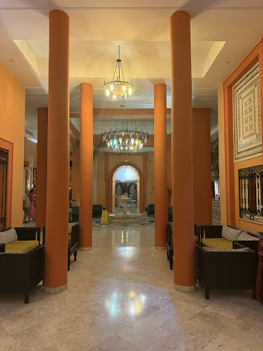 There are positive and negative aspects to this hotel. The positive aspects include an indoor heated swimming pool which is open all day to all guests, incredibly friendly staff, beautifully well kept grounds and large bedrooms. The negative aspects surround the catering, entertainment, and communal facilities.||The food provided is somewhat varied, and by this I mean that the cooks find ways to deliver 'different' dishes each day, however the ingredients are very limited. Liver, eggs and pasta are served on a nightly basis, and these are the main dishes. That said the salad is very nice and they offer a good range of desserts, though they are repetitive. The snacks are just leftovers from breakfast and lunch left on the bar for guests to serve themselves. The use of leftovers is quite noticeable. Eg. Fish served at lunch not eaten (far too many bones for anyone to safely eat), served again and dinner time and again the following day. All food is served cold at this resort, including main dishes at lunch and dinner, however a microwave is provided which guests can use freely to warm up their food. The a-la carte restaurant is not currently open.|The alcohol served is obviously cheap and nasty spirits, though the mixers are proper Coke and Fanta straight out of the bottle as opposed to taps. The fruit juice is simply undrinkable, making the small selection of cocktails they have available to All-inclusive guests off limits. It has to be said that the communal areas are always clean and tidy, the only issue lies with replenishing of basic supplies such as toilet paper and hand soap, however this can cause great inconvenience.|There is absolutely no entertainment of an evening whatsoever. A laptop is left out which controls the music and guests are able to use it to play their choice of music. There is a kids club, but it is not staffed, it is simply a room filled with games and toys. There is a cafe which sells tea and shisha, however it is not regularly open. If you ask at reception they will open it for you to use. It's quite pleasant once you're in with stunning traditional decor. |In summary: it's overall enjoyable; the food is passable but not something you will look forward to; the staff are very easy going and delighted to serve you; and the grounds are stunning.||There is one last thing to mention. The hotel is not just a hotel. One of the blocks of rooms is used by an elderly care provided. It's a nursing home aswell as a holiday resort. This affected us in different ways each day. There are limited amounts of sun loungers to begin with, but then 25% of them are taken up by the care home each morning and afternoon. The care home residents have access to all communal areas at the same time as guests. They are escorted by very professional carers, however this does not avoid challenging behaviour such as shouting. It has to be noted unfortunately that they are not removed from the bar, poolside or dining room when they shout. That said the antisocial behaviour seen in these service users is mild and inoffensive. They have physio sessions in the indoor pool during the day whilst guest are using it. Whilst this does not stop guests from using the pool, it can make it difficult to swim around freely.||Thank you to all the staff who made our stay overall pleasant by serving us with a smile and accomodating to our every request. Especially Karim - the most accommodating of them all. He bent over backwards to satisfy us, going above and beyond without being asked to. It enhanced our...