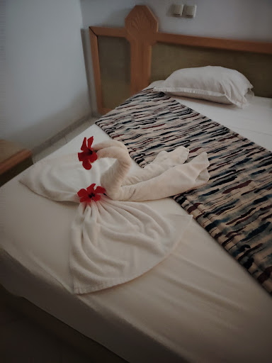 We booked this venue through Thomas Cook as we preferred to be very close to the beach and their online details showed a picture of what appeared to be a nice venue overlooking lovely beach/sea views. But as it happened the beach was a long walk from the hotel and the nice "on-the-beach-venue " wasn't there. However, when I queried it with the lady behind reception, she seemed to think that the "pop-up" beach venue was only there in the summer...Such a great shame !||The Hotel:|It's a nice looking venue and first impressions on entry was a definite "wow".. the little fountain area in the lobby is impressive and there was plenty of seating all around. We received a friendly welcome, and after the formalities we were given our room cards for our room on the second floor close to the lift as requested.||Bedroom and bathroom:|The room was a little on the small side, but impeccably clean. We needed to speak with reception about something, and luckily there was a phone on the bedside table... but dear readers, when, after pressing various buttons, the phone was just silent! So we moved the bedside table to see if it was actually plugged in... and all we saw was a bundle of wires sticking out of the wall and NONE into the phone. šš¤£... no wonder it wasn't working!|So we went downstairs to mention it and the next thing we knew when we returned to our room, was that reception had sent up the maintenance guy who was only holding another phone in his hand, also without a lead ...which of course was of no use whatsoever... we showed him the wires hanging from the wall and I'm sure he must have understood as he seemed a little embarrassed by the whole silly situation! Think Faulty Towers! It was like a comedy sketch.... and we'd only just arrived! What would be next š |The bed was comfortable and came with lumpy pillows - which actually surprisingly enough were also comfy to sleep on.||Bathroom:|Immaculately clean! No nasty fingermarks on the mirror, and we had the usual bathroom condiments with lovely smelling shower gel and shampoo. There was a walk-in shower as opposed to a shower over a bath, which was great. It had good pressure and the water was always lovely and hot.. it was a pure joy to stand under especially seeing that it was cold.. (still low season) but I didn't expect it to be that cool! |The lovely lady who made the bed and cleaned our room each day was a darling! She said her name was Hazel (not sure if I heard her right but it sounded like it..) not particularly Arabic but nevertheless we were able to communicate with each other. And extra special hugs with many "Shukrans" when she decorated our bed with flower petals... such a kind gesture and so so appreciated. ||Restaurant:|Plenty room all round with a help-yourself-style buffet for breakfast, lunch and dinner. All the staff behind the buffet and waiters were incredibly helpful and courteous. One tall helpful lovely waiter in a white shirt, whose name I have completely forgotten I'm ashamed to say, decorated our table with gorgeous hibiscus flowers and bougainvillea flower petals. Again many appreciated Shukrans all round.||Wines: (š)|We ordered a bottle of red wine with dinner the first night which we didn't expect to be super good, but I have to admit that is was really nice and a lovely surprise - so much so that we ordered another bottle of the same quality the following night (the only choices were red, white or rose) On another night the waiter came back with a clear glass bottle the contents of which looked more like rose rather than deep red, and when we tried it it tasted like vinegar, it was truly awful. Not even remotely palatable, so it got sent back and subsequently replaced with a bottle exactly the same, which was also immediately sent back after tasting. We then asked if they had a bottle of what we had before we were told that this was all they had.. The ONLY red wine was the old vinegar tasting stuff.. So, the next available option was to go for a bottle of rose, which when it arrived had a darkish peachy colour and tasted quite nice also. |So far so good, or so we thought. The following night we asked for the same rose, but his time the colour was very pale, and in our opinion it very much tasted like it had been watered down.. Anyway.. this pale coloured non tasting liquid was, needless to say, also returned to where it came from.. and what they did with it behind the bar is anyone's guess...However, it was subsequently replaced with another bottle of the same label which luckily tasted completely different and more like the wine of the previous night - it also had a much better colour. So! Sadly to say... not great on the wine front.. seemed like they just wanted to get rid of some old wine that had been lying around to their all inclusive European clients.. Impressed?? ||Hammam:|In need of intense refurbishment, the toilet was broken in that it didn't flush, the inside of the steam room had black mould on the walls and ceilings with paint flaking off. The sauna with broken slats of wood on the floor. I have to say that the mould worried me.. hoping that I wouldn't become ill |Nala was lovely, she is clearly good at her job and we both enjoyed our pamper time - just such a shame the place was so run down.||Day trips:|Instead of going on a so-called organised activity trip (as hawked on an irritatingly daily basis by a person who has great difficulty in understanding what "No thank you" means ) you can have your own driver who will take you wherever you want, which is what we did|His name is; Chaaben khedira Gerant he's on FB and is a pleasant helpful guy and speaks good English ||Negative bits:|Outside by the pool/conference room area towards the entrance to the indoor pool and hammam, there are so many places that need to be deep cleaned, maintained, painted and refurbished, some of the sun beds need to be renewed as they were broken, and all of them can do with a good scrub. Basically attention to det