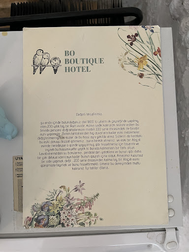 Read moreIt was wonderful 3 days stay in Alaçatı at Bo Boutique hotel, which is located in a quiet area but so close to main streets. It’s 200 years old building, each room has very stylish and elegant decoration. Our bed was super comfortable. Aslı hanım and her sister is managing hotel very well, they make you feel you are their friend who came to visit them. Room was perfectly clean and welcoming. Breakfasts were beyond expectations, every day different choice, with home made pastries, jams, farm foods…we were full for half of the day. Thank you very much Aslı and her team from Svetlana and Ümit, we definitely...