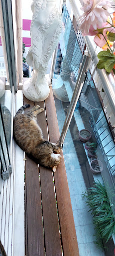 Masa sandalye ve şemsiyelerle minik bir oturma alanı var pansiyonun olduğu dar sokakta. Sabah erkenden çarşıdan latte ve boyozlarımızı alıp orada oturarak kahvaltımızı yaptık. Arkadaşımla uzaktan çalıştığımız için laptoplarla çıkarak bir süre o alanda çalıştık.