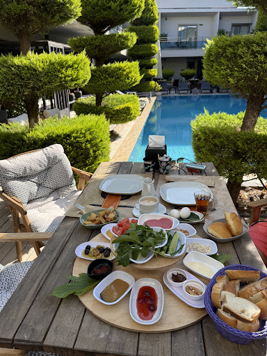 Read moreOur room was super clean and comfy when we arrived. The bed was king sized and the sheets were clean and soft. It had a high ceiling and a rain shower. The third bed was very small I guess it’s a childs size and it was a little hard. |The hotel itself is build like a motel. Every room has a balcony, but they are not separated from each other. Just low plants that are placed between the guests. So you basically sit next to other guests. So zero privacy. We couldn’t open the balcony doors through the night because there is no mosquito net|Breakfast was good it had many variations of a typical Turkish breakfast. They had fresh bread like „Brötchen“ which were fresh, tasty and not like the usual bread you get here. |The staff was super friendly even the young students that are there through the summer to help out were always available and helpful. |The WiFi was not the best so we had a hard time surfing the internet to be honest. For using just WhatsApp it’s totally fine. |Would I recommend this hotel? For younger groups definitely, but for couples that appreciate privacy, no. |So all in all a solid 7...