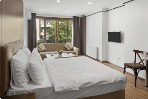 الفندق غير مريح نهائيا. Otel kesinlikle rahatsız edici. عبارة عن عمارة ضيقة تحتها محل تصليح كفرات تم تحويلها لفندق، والمكان مزعج لوجود ورش تصليح سيارات بجواره. كذابين لايوجد تكيف في الفندق كما هو موضح في المواصفات، غير متعاونين. لا يمكن الوثوق بهم. الفندق غير آمن يسمح باصطحاب الغرباء للغرف. الستائر خفيفة ولا تغطي كل النوافذ لا ترد الضوء اوالحرارة. غرفة نوم بدون دولاب. الغرف والحمامات قذرة. مدير الفندق تعامله مادي. لم اكمل مدة اقامتي في الفندق ولم يسترجع الفندق قيمة الليالي الشاغرة.
