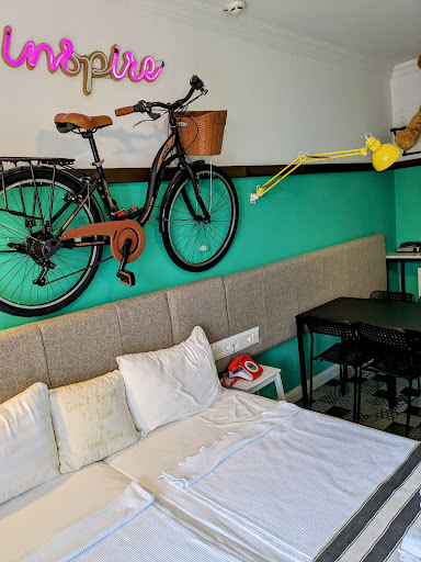 Read moreWe are a young family of 3, so our review is from a young family view point. One start is for location . It is very close to the beach and they have their private beach next to the sea. Where you can lay on the free sunbeds, free wifi and umbrellas are available. Second start is for personnel. They were nice and accommodating. Also loves children. The house keeper cleaning everyday if you put a sigh and cleans well. Minuses : rooms are not soundproof, there are more quiet rooms, but not family rooms cause they are on the busy road side. -The floors are very sleepery for a toddler. -Family room we had, had no kitchen. When we changed room to standard room, there was kitchen, but no cookware like they clame on their website. Also intresting that you are not aloud to bring any food or drinks in the hotel even thought there are " kitchens " no complimentary tea or coffee in any rooms we had,even thought it was mentioned in their website. even though it is very new hotel, we already had issues with broken toilet, leaking airco, some doors are not closing, due to water damage, in one the room shower had mole or smothing growing on the ceiling. -breakfast, should really be carefull about meat and cheese their are serving. Few me and husband tried tasted sour. Good thing they are making fresh omlets if you ask. also not a fan of red lights in the colidors and bicycles above our head. -also swimming pool looks nothing like in pictures . -no loundry services in the hotel. But there is one very close to the hotel. All in all , for a young family i would not recommend, but for young people its a great...