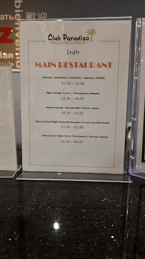 Read moreWe came home yesterday after a weeks stay at club paradiso (family of 5, children aged 5, 3 and 1). We had the best time ever and the service was always brilliant. Staff make an effort to talk to you and are excellent with the children especially John who was very polite and helpful. There is a huge selection of activities for the children such as kids club with a soft play inside, children’s pool and water sprinklers, water slides etc. On site there is a tattoo shop, a clothes and bag shop, hairdressers/salon, a grocery shop, an arcade, a photography shop, snack bar and a bakery serving lots of pastries/cakes/waffles/ice creams. Our family suite was very spacious and offered lots of facilities (kettle, hair dryer, travel plug, air con, tv, mini fridge etc). The whole site is very clean and looked after. The entertainment was fantastic from African acrobats, bingo night, the mini discos, Michael Jackson tribute etc, they were all great and made a fun evening. The drinks selection is great which includes both alcoholic and non alcoholic cocktails (perfect for my 5 year old who felt grown up with the non alcoholic drinks!). The hotel offers a free bus service to their private beach which has a snack bar with burgers/chips/hot dogs/salad etc and also we had a free ride to the shopping mall and brought lots of fantastic quality clothes. The only down side to the hotel was the food is not great for picky eaters other than at the snack bar which is open 12.30-4pm. I enjoyed the food which was always fresh and hot and loved tasting traditional Turkish food which I had not tried before but for my children they struggled in the main restaurant to eat anything other than pasta and bread. I was surprised as there was a large amount of children at the hotel I thought there would be more of a selection aimed at them. This wasn’t much of a problem as we made sure to eat at the snack bar when it was open for them. There is not many English families at the hotel (mainly families from Holland/sweden/belgium) but everyone was still super friendly towards us and we never felt left out. The large majority of both guests and staff spoke good English. We loved the jeep safari trip and the land of legends trip! Highly recommend this hotel to anyone who is looking for a family friendly hotel as this hotel deserves more than 5 stars! Thank you club paradiso and we will be back soon! From Courtney, Connor, harlie, Lucia...
