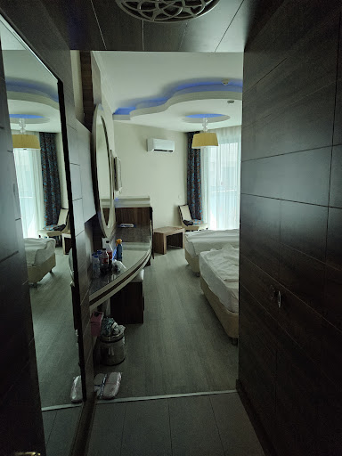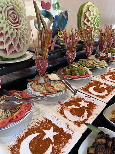 Eten Het eten was redelijk maar viel enigzins tegen. Het eten is vaak lauw, tenzij net bereid, en ik vond de keuze behoorlijk beperkt en veel hetzelfde. Zo waren er altijd dezelfde soorten salade, en waren de toetjes bijna altijd hetzelfde. De sinaasappelsap, ananassap en kersensap waren echt niet te drinken. Dit was niet vers en proefde extreem zoet en chemisch. Er was maar één pak ongekoelde melk en één schaal ongekoelde yoghurt met klonten. Ook waren er geen normale plakjes kaas. Wij hebben van de 7 dagen maar 2 dagen baklava gezien, wat erg jammer was. Wel werd er op één avond tijdens het buffet rondgegaan met een kar met ijstaart, dit was wel erg leuk en had vaker gemogen. In de eetzaal was het erg koud door de airco, maar als je buiten wilde zitten zat je steeds in de sigarettenrook. Dit probleem was overal aanwezig in het hotel omdat overal veel gerookt wordt, behalve binnen. Het alcohol aanbod was zeer matig. Er is GEEN menu aanwezig en er is keuze uit twee cocktails, of je moet zelf maar wat verzinnen. De sterke drank heeft een erg nare smaak en smaakt goedkoop, ik vond dit echt tegenvallen. 's avonds na het buffet die 21.00 uur eindigt worden ook geen hapjes en snacks meer aangeboden dus hebben wij dit zelf maar ergens anders gekocht.