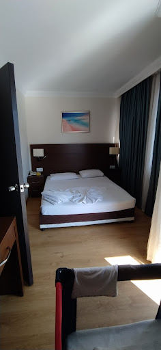 Read moreAnkommer til hotel Parador Suite kl. 01.30 med hurtig og komfortabel shuttle bus fra Interwest transfer.||||Tjek in foregik ubesværet. Vi ankom til hotellet en time før rejseselskabets bus, så vi havde tid til opkobling til gratis wifi. Wifi var desværre kun gratis i Lobby og poolområde, ikke på værelserne. Lært af erfaring, er internetforbindelse på værelset et must, hvilket hotellet nok også har indset, da det kostede 15€ (15 Euro) pr enhed, hvor Samsung mobil ikke kunne opkobles til hotellet hotspot.||||Hotel Parador Suite ligger gemt mellem||Andre bygninger. Der er ikke havudsigt. ||Aircondition i lobbyen var den smule vind, som kunne komme ind i gyden. ||||Værelset var pænt og visuelt rent, 4 opredninger med sengetæppe lagt i formation, et til hver seng, dvs deling af 90x200 cm sengetæppe i dobbeltsengen - det går ikke. Fik hurtigt et ekstra sengetæppe. ||Aircondition på værelset fungerede fint. ||||Næste morgen stod vi op til en diskret morgenmadsbuffet - en buffet, som fulgte os hver morgen. Hvidt brød, udkogte hele grønne æg, spejlæg med pølseskiver eller scrample æg med en masse ubeskriveligt iblandet (kun en af de beskrevne hver dag). Lidt ost, pålæg med kød-lim og tomater, agurker. En af dagene var der friturestegte Kyllingenuggets fra frost og en anden dag friturestegte løgringe eller blæksprutteringe fra frost på morgenbuffeten. Juicen mindede om den velkendte Fun saft fra Dk i fortyndet udgave. Kaffen lavet af ekstrakt, var drikkelig, men ikke velsmagende. Alt mad serveres i poolområdet som hænger sammen med spiseområdet. Nogle gæster fik påbud om at bære t-shirt, andre ikke (Selvfølgelig spiser man ikke halvnøgen - pli søges !).||||All Inklusive på Parador Suite inkluderer en lille buffet, bestående af rester fra dagen før tilkoblet nyt meget opfindsom mad fra frost, ||Standarten er en slags kød til hvert måltid, herunder 3 dage med udkogt kylling fra frost. Retfærdigvis overfor den opfindsomme kok, var det 3 forskellig slags kylling, herunder små bryststykker i en stor pande i karrysovs (ikke sauce), lår i en stor stegepande og hel bryst med vinge. Søndagens eneste kød er lever (sagde de andre gæster). Kødet til hvert måltid er stegt eller udkogt til pulled meat, hvor smag og konsistens er en oplevelse af alt muligt og ingenting. Kokken er en sand mester i at genbruge maden fra dagen før, f. eks på kunstfærdig vis med pulverkartoffelmos og ketchup som garniture på røde håndformede cous cous klatter, hvilke kokken i øvrigt var mester i at forme, friturestege eller gemme under rester fra dagen før. ||Maden er sat pænt op fra starten, men efter 5 min er det æstetiske helt væk. ||Kokken står under hvert måltid og observerer om fadene bliver tomme og det bliver de, hvor så kokken i en stilfærdigt tempo sørger for nyt lang tid efter. Det var uden undren, at fadet/gryden med slatne pomfritter tilhørende ketchup og mayonnaise var det mest eftertragtede ved både frokost- og aftensbuffet. Faktisk så eftertragtet, at folk mistede både pli og køkultur. ||||Selvom det var midt i højsæsonen, var der dejligt stille på hotellet og kun halvdelen af spisesalen var fyldt ved hvert måltid.||||Poolområdet havde en lille ren og pæn swimmingpool med 1 vandrutchebane, som var tændt 3x2 timer dagligt . Hotellet råder over ca. 30 liggestole ialt. Vi kunne ret nemt finde 2 liggestole til os 4. ||||Håndklæder blev ikke skiftet på noget tidspunkt. Vi spurgte dagligt efter nye og fik nye, når vi spurgte. ||||Wifi til 15 Euro pr. enhed virkede for det meste...
