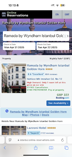 Read moreThis hotel is misnamed on Trip Advisor. It's now called Festinn Suites Hotel. It's located in the off-the-tourist track Golden Horn, in my view one of the most interesting parts of Istanbul. It is very hard to find. Taxis don't know it (and the rip-off artists will take advantage of that). You can get to the hotel from Attaturk Airport by taking the metro and then the metrobus to the Haljoli (sp?) station. From there take a cab to the hotel. But few drivers will speak much English so have the help desk at the airport write out the name of the hotel and the address in Turkish. A landmark most know is the Miniaturk and it is a few blocks north of there on the west side of the road. (It's also close to the Hilton Garden Inn but that is up a hill from the main road.) You can also take the 401ST bus from that metro station but it is hard to find the right direction and place for the buses. You need a bus/metro pass to which you can add money; buy it at the airport station. It works on the metro and the major bus lines. THE GOOD: the suites include 2 rooms with a small kitchenette and living area and a separate generous sized bedroom. The views from the window of the Golden Horn across the street are splendid and the breakfast is decent (but tiresome after a couple of days.) The staff are very helpful in intent if not always knowledgeable. There are many small restaurants and few larger ones nearby. The smallest ones won't speak English or take credit cards. There is a small swimming pool in the basement and a nice turkish bath and sauna. THE BAD: The raod noise is loud from all rooms (they claim "soundproofed rooms"; they are not. Also, the bathrooms are linked to a central air shaft and are malodorous. (I looked at 3 rooms and they all had this problem.) There was mold on the sink and floor grouting of the bathroom. The smell does not go away even by closing the bathroom door and opening the outside windows (hard to do when it's cold). The cleaning staff are not adequately trained or rigorous in their cleaning and the products they use do not adequately kill the mold in the bathrooms.I cannot recommend this hotel until it fixes the problem and clean up the mold; this is unsafe in my opinion. The exchange rates are terrible--use an ATM--and some of the staff are more pleasant than...