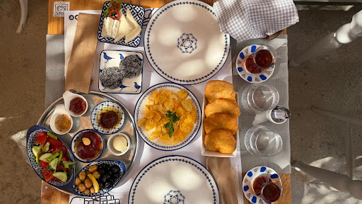 Kahvaltı: Her zaman yerel ürünler, harika ev yapımı reçeller, güzel ege peynirleri, her zaman iki farklı sıcak servis pişi, yumurta, börek gibi. Sabahları filtre kahvenin ekstra olmasına her ne kadar anlam veremesem de, oda fiyatına dahil edilebilir kimsenin gözüne batmaz, tuhaf bir his yaratıyor, iyi kahveye erişimin olması güzel.