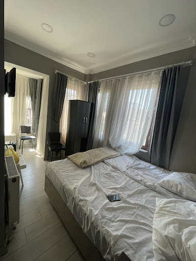 Read moreОтвратительный отель, очень грязный. Номер метров 7, зачем-то стоит вторая кровать, может у них во всех номерах стоят, не знаю. Ни шкафа, ни какой-то ниши, куда можно сложить вещи нет, пришлось использовать эту кровать для хранения одежды.. Крошечные окошечки, занавешенные шторами в пятнах. Вид из окна на какую-то общагу, вроде как мне рассказали там живут сирийцы, которые шьют что-то в соседнем подъезде. Один раз заметила, что житель этой общаги снимает на телефон мое окно, больше шторы не открывала. Покрывало все в пятнах и прожженое сигаретами. Грязь в номере ужасная, на фото видно: все углы в пыли, в ванной в плесени. Сушилка для полотенца замотана каким-то целофаном, не рискнула вешать туда полотенце. Унитаз шатался, в первый же день отвалилась труба канализационная, вода в поддоне (типа душ) не уходит, стоишь по щиколотку в воде. Телевизор не работает, кондиционер не знаю, так как было прохладно, его не включали. Номер не убирался ни разу за все время, мусор я выносила сама. Сам отель крошечный, лестница как винтовая и очень крутая и узкая, с сумками еле пройдешь. Слышимость ужасная, слышно все, что происходит в соседнем номере. Завтрак: отдельная тема. В первый день принесли яйцо, хлеб, джем, помидоры, огурца, колбасу, сыр, оливки и чай. Дальше каждый день почему-то ингредиенты убавлялись: сначала отменили сыр, потом джем, затем огурцы. Дальше администратор сказал, что сегодня плохой завтрак и принес яйцо, кусок колбасы и хлеб с оливками. Расположен отель в удачном районе, близко до достопримечательностей, но стоит не в удачном месте. Про общагу я уже написала, добавлю, что стоит на перекрестке 2 дорог и с 6 утра все это начинает вопить и орать, продавцы картошки, еще бог знает чего, машины, мотоциклы. Вечером опять же поселенцы общаги и иже с ними сидят чаевничают до часу ночи под окнами. ||Из плюсов: белье на кровати было чистое и вкусно пахло, вай-фай ловит в номере и бесплатный, вежливые администраторы.||Очень не рекомендую...