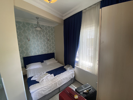 Read moreПри выборе отеля исходили из небольшого бюджета, поэтому представляли, что нас ожидает. В целом отель неплохой! Находится в очень удачном месте: район Чемберлиташ; в нескольких минутах ходьбы остановка трамвая Чемберлиташ; в 10 минутах находятся основные достопримечательности Султанахмеда; размещается в жилом районе, в результате чего не шумно (если не считать призывы на молитву и крики чаек); рядом есть продуктовые магазины. Дружелюбные и отзывчивый персонал, что радует, ненавязчивый. В отеле достаточно опрятно и уютно, но несколько тесновато. С первого этажа, где находится ресепшен, надо подняться по винтовой лестнице на следующий этаж, с которого ходит лифт. Это создает проблемы при подъеме и спуске с чемоданами. Мы жили в 303 номере с видом на Мраморное море, правда нижняя часть вида была омрачена видом разрушенного здания, а другое окно выходило на жилое здание. Заходили в 301, там вид совсем удручающий - помойка и тоже разрушенное здание. Номер на двоих с двумя раздельными кроватями, очень маленький, но после посещения 301, где двуспальная кровать, мы поняли, что наш номер еще более менее. В номере были: шкаф (висели 2 вешалки, нам было маловато), электронный сейф, мини бар, тумбочка, стул, стол с зеркалом, телевизор, кондиционер. Все в рабочем состоянии. Уборка производилась каждый день. В ванной - душевая кабинка (в номере 301 у душевой кабины отсутствовали двери, и даже шторка не висела), унитаз, раковина, зеркало, фен, мусорка. Были предложены 2 больших полотенца, 2 маленьких, 2 пары тапочек, 2 мыла, 2 шампуня, 2 геля для душа, еще висел полный дозатор для жидкого мыла. на первом этаже отеля находится ресторан, где всегда можно поесть. Есть еще на крыше, но он еще не был открыт. Завтрак скудный, но вполне съедобный и сытный: яйца, картошка фри, сосиски, колбаса, сыры, оливки, маслины, огурцы, помидоры, мюсли, хлопья, масло, сметана, чай, кофе, соки, молоко. Вечером вам предложат приготовить свежую рыбу примерно за 28 TL (цена вполне как везде), но можно заказать и большую примерно за 150 TL. Поскольку самолет у нас был вечером, а выезд в 12 часов, мы попробовали договориться о продлении номера, но выяснилось, что номер уже забронирован другими людьми. Но мы смогли оставить наши чемоданы на первом этаже до вечера. К нашему приходу все стояло в целости и сохранности.||Из минусов: 1. у унитаза плохо работал слив (что бы остановить воду, приходилось приподнимать крышку, иногда ее крутить). 2. в душевой кабинке была плесень. 3. отсутствовали крючки, держатели для полотенец, полотенцесушителя, что было очень неудобно. 4 .в ванной очень холодно, т.к. в углу было круглое отверстие прямо на улицу размером 15 см. 5. в ванной убирались не очень качественно, т.к. на полу оставались волосы, а в раковине разводы. Постоянно путала наши полотенца ( меня полотенце и белье не каждый день, а через день). Кроме того, за день до отъезда, горничная решила, что туалетная бумага нам не нужна и не положила ее. Пришлось позвонить на ресепшен, и администратор сам нам все принес. 6. мыло было размоченное, хоть оно и было в упаковке. 7. зеркало висело очень высоко, я при моем росте 150 видела в нем только свои глаза. 8. у мини бара электрический шнур был перемотан изолентой, то есть у него есть повреждение, что не есть хорошо. 9 . ну с электрикой у них не совсем все ладно, шнуры торчат то здесь, то там. 10. на весь но