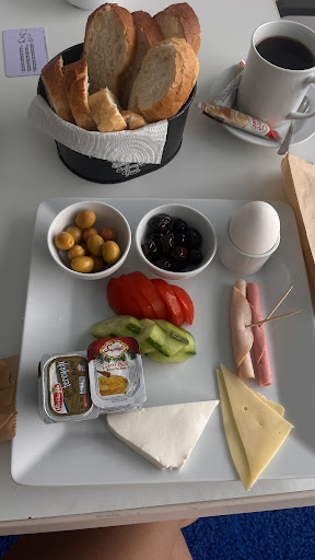 A nice hotel - furniture & decorations were old but everything was clean. The pool was nice.||breakfast was served every morning on the patio by the pool. Very small charge. ||We got food delivered from a local restaurant.||It’s about a mile from town center you can get a taxi or you can walk||It’s close to a small harbor, also close to 3 restaurants in the area. There is also a couple of small markets||||If you’re on a budget I highly recommend this hotel. ||Especially if you don’t mind a good walk into town & to the main harbour. (Bare in mind in the summer it’s super hot & humid) ||||The closer to town the more expensive the hotels are||||The staff were very nice and helpful. ||We booked a room high up with a sea view and the view was lovely had a small balcony.||Fridge in room and a tea kettle ...