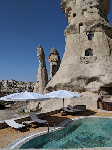 Read moreAmazing hotel. This hotel is located on the hill in a quiet street away from all the noise and dust. Hotel has 2 sections which are divided by the main road. Our room was a standard room at the connecting building and it was a cave room. It felt small with 2 big luggages but was managable. Room was spotless clean and bathroom was big. Bed was very comfortable and the design of the room is very authentic. Hotel does not have lifts but has lots of steps therefore not suitable for people with limited movements. Hotel's grounds are amazing and the exterior desing is just stunning for antique or history lovers. They have furniture and decorations that are very old antique everywhere including rooms. Hotel garden is beautiful and surrounded by lavender and some other flowers which attracts lots of bee and wasp. If you have allergies to these then you won't feel comfortable staying here because wasp comes to your table while dining or drinking. No mosquitos! The pool is small but pleasant to cool down and chill. Hotel is located at a great location with amazing view of the valley and makes you feel relaxed. I found breakfast to be basic in my experience but lunch food was delicious. The food and alcohol prices were similar to London-UK prices but it is quite normal in Goreme because everything is more expensive than it should be and it is difficult to find tasty food in town centre. As a turkish people we didn't like town food and had bad stomach. We would definitely eat at the restaurant if we were not travelling with friends. Hotel staff were absolutely wonderful. They were very attentive for any of our needs and always had a smile. Dilber had been amazing and the staff at the restaurant. Overall we and our guests enjoyed our stay at here and we definitely would come back to stay here again in the future. Definitely...