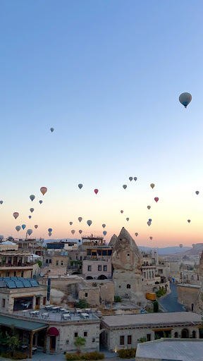 Location & Views: The hotel's location is simply perfect - perched high up on a hill offering the most spectacular views of Cappadocia's fairy chimneys. We were able to watch the hot air balloons from our room each morning, which was absolutely breathtaking and a highlight of our trip. Despite being elevated for those stunning views, the hotel is still conveniently close to the heart of town and within easy walking distance to numerous restaurants and attractions, including a wonderful Turkish bath we visited.