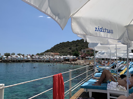 Read moreWe went to this beach club in motorcycle and we parked for free outside. ||Parking is available for both cars and motorbikes.||After we entered, we asked for sunbeds.||The beach club is divided in layers and people that arrive earlier in the morning are the ones that can find closer places to the sea.||We took one umbrella and one sunbed for two people in the row before the last one (sunbed is 100 and umbrella is 20tl)||You can order food/drinks directly from the sunbed through digital menu or you can go to the eating area and check with physical or digital menus.||We ordered two milkshakes. 1 chocolate and 1 caramel. Total price: 128tl.||As lunch during the afternoon we ordered one chicken wrap (140tl) and one fried chicken (85tl).||The sea is hot and clear.||The staff members are kind and available.||The beach club is not accessible to people with disabilities since it has only stairs.||There are two bathrooms for all the beach club, one male and one female.||Great beach club with a great sea. Just the price is not this great. Little bit expensive compared to other places in Kaş. To pay we brought number of umbrella to the cashier, but when they were calculating they added one sunbed more even if they knew that, that position was only for one. And we noticed it after we finish our holiday so we paid one...