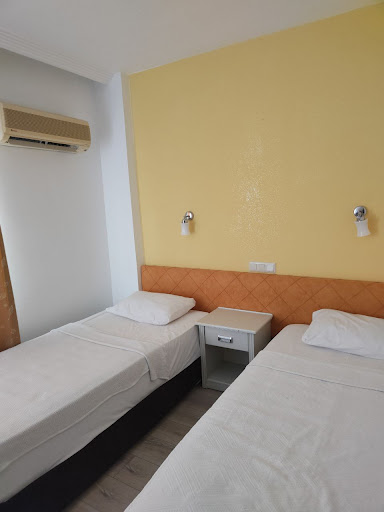 I spent 10 days there with my husband and four-month baby. Hotel really looks like on the pictures, only in much worse condition. In the rooms there are no beds, but two mattresses, one on top of another. The rooms are relatively spacious, with a balcony overlooking the balconies of the next hotel (in the distance you can see the sea). Because of the heat and the loud noice of aircondition on the next hotel's balconies, it has been impossible to sit on the terrace. ||||The service is all inclusive, the food is good, but they rotated a couple of choices of food, so that it can soon get bored. The restaurant is located outside, but the heat there is from 7: 30h, it was the effect of the sauna, so it is not pleasant to sit there longer than necessary. Also, milk products that overtake from breakfast, are sometimes served for lunch and dinner and are almost all day standing there in the heat. Hygiene in the restaurant is bad, waiters ''clean'' tables by blowing into them and eventually hand pick up crumbs from the table.||The staff is very friendly and helpful, but their biggest problem is lack of knowledge of the English language.||||Rooms are clean and change linens every day, but the general level of cleanliness in the hotel is below average.||||The hotel's location is its biggest plus- it's located on the beach (the beach can be reached in about ten steps). The beach is pebbly, and the sea is very clear and warm. There is always free sunbeds. Bar on the beach is awful, and the drink prices are three times more expensive than usual (Efes beer that is free in all inclusive at the hotel restaurant, at the beach bar costs almost 3,5 euro).||||On the other side of a hotel is a city centar, shops and main pedestrian street. There are many beautiful parks in Kemer and the path alongside beach is very nice and green, too. The only drawback of location is that hotels are very close to each other so that the noise from the music from the neighboring hotel at night can be disturbing, especially if you travel with small children. But insulation in the rooms is good, so that when you close the balconies door,...