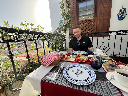 Read moreSince the moment I made the reservation, Okan contacted me. He also arranged our transportation pick up from the Izmir Airport. Our flight was one hour late and I didn't have service on my phone! Thank God when we went outside there was Ozan waiting for us, holding a sign with our names on it. We felt so relieved! We had a little over 1 hour drive but Hassan and Ozan made our drive seem very short. Both so friendly, polite easy to talk to people. And even though we were late when we got to the Hotel we were greeted with warm smiles and lots of information. They were so understanding and we truly appreciated that. Then Huseyin gave us a tour of the GORGEOUS villa, set us up in our room, and suggested a really good restaurant for our dinner. Then in the morning we were treated to a WONDERFUL delicious traditional Turquish breakfast sitting on the Terrace overlooking the Kusadasi Port. The food was just amazing but really, Huseyin stole the show. He took service to another level!!! Congratulations to Okan and everyone at Villa Ephesus Hotel. Thank you for making us feel so welcome. I can't wait to come back and stay at one of your carefully designed unique rooms...so many details!!! There are a lot of steps but they help you with the luggage. My husband and I fell in love with this place. I recommend Villa Ephesus Hotel to anyone visiting Kusadasi, especially if you are cruising, it is located super close to...