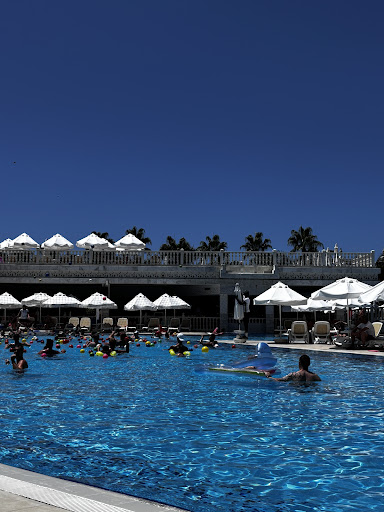 Read moreThe hotel is very beautiful, our family room was spacious with 2 persons bed, one person bed and one extra bed they brought. The room was facing the aqua park and mountains, very beautiful. The room has necessary facilities, toileterries. The hotel has several pools however majority of them are 140 deep which is not handy for small kids. Therefore we stayed most of the times by the aquapark where smaller pools are located. There are about 8 slides, one was closed during our stay and 2nd closed also the last days. Normally kids as of 10 can go on majority of slides, however if you sign a paper at reception that you take the responsibility, they will give another bracelet to your kids to be able to make all slides. My son of 6 did all the slides by himself. But of course kids must be able to swim, because you land in the pools of 140-180 deep. There are also 3 baby slides, which kids can enjoy. The lifeguards in the aquapark are super friendly and always having fun with you, which always adds on to your mood.|The beach is just infront of the hotel, with real soft sand. There are enough chairs everywhere. Many people reserve chairs early, but even those coming at 10-11 always find a spot. At the beach you can enjoy water sports. They also make photos and videos of you when you do it, make sure to negotiate the price if you want to buy those photos/videos;-) if you have kids, there is kids club. Compared to other hotels, there were not much special activities in there and often you need to pay extra for example for a glitter tattoo. What’s nice is that some days you can have banana ride at the sea for 15€, therefore with 5€ discount. My kids of 6&8 had fun and did it twice. The ladies in kids club speak mostly German and Turkish. One lady speaks Russian. There is a promenade next to the beach where you can walk. If you go to the right from the hotel, till the bridge, you can spot sea turtles swimming under it. They are used that people come to feed them with eggs there:)|The hotel has its own free of charge lunapark. Kids and even us enjoyed it every day. In the evening there are shows however compared to another hotels, the shows here were not so great, however if you are not traveling often, you might be happy with those.|The spa at the hotel is twice more expensive than on the street, and eventhough I asked for soft massage, I still god very painful one and had to 100 times say that it’s too hard. So go on the street infron of the hotel, where shopping place is. There we paid 45€ for 2 persons full body massage of 1h. The shopping in front is open till 23:30, the quality of items is not that great compared to other places in turkey we’ve been, but prices are rather cheap and open for negotiation. There is other shopping area 15min further, with lower prices but also lower quality.|The hotel has one buffet restaurant, we always found something to eat. There are several snack places open here and there but we didn’t eat there as it’s mostly fastfood, but also fruits. There is free bottles water everywhere around the hotel and icecreams.|The hotel is located 1h drive from the airport. Transfer back if pretty much in advance, to ensure you arrive 3h before the flight or even earlier. In our case when we have already checked in it’s rather a disadvantage, as turning there for 3h is pretty long.|Important to know that this hotel speaks mostly German as most of the clients here are Germans. It’s pretty annoying because the English of the staff members as well as people around the hotel (eg in shopping) if rather bad.|Opening hours of kids club are not very comfy: 10:30-12, 14:30-17, not handy if you want to have massage later in the day. Opening hours of aquapark 10-12, 14-16:30, with hardy queues. Opening hours of lunapark 19-21:30.|No food before 17-18:30, except for patisery.|All in all good hotel with minor things that...
