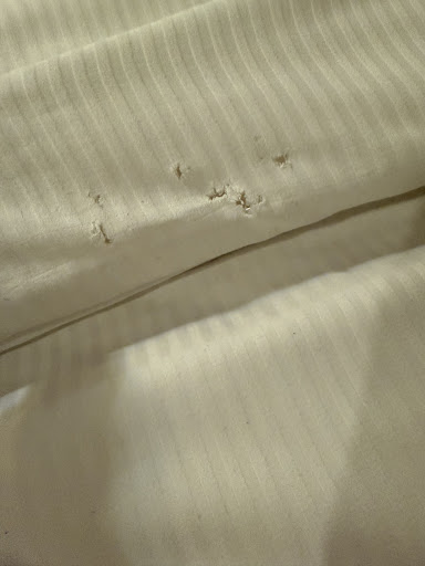 Holes in the bedding, a previous guests slipper, bins not emptied and a bath tub with previous guests bath scum!
