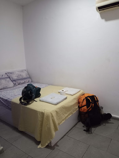 The place was filthy. The rooms were dirty, the fans were covered in thick mold and dust, the curtains were torn, and the beds and sheets had visible stains. The shared bathroom was moldy, and the water came out in a thin trickle. We had booked a double room with a shared bathroom, but the rest of the rooms (which seemed to be dorms) had their doors wide open, with random men lying on the beds shirtless with their bellies out – it felt extremely uncomfortable and unsafe.