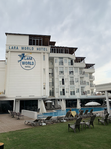 Pro tip when you come in Turkey: always have Google translate or a dictionary at you 24/7!!! Nobody speaks English!! You will barely understand each other. This can be normal on the streets, but I find it very unpleasant at the hotel where we couldnt communicate with nobody and we had to show photos or use google translate (sometimes we forgot our phones in the room). The staff is decent, they lack any English skills, but sometimes they seemed like they are on holiday, not us. There is one employee at the reception that looks like he smokes weed 24/7...he was always useless, we could not understand each other and when we were talking to him he always looked like he was ready to burst into a big laughter which seemed very rude. Thank God for the lady that spoke very good German at the reception, we managed to get some answers for our questions. The concept of "all-inclusive" at Lara World Hotel is different than what we had experienced in the past (Spain, Bulgaria, etc.). We had our reservation booked for "ultra all-inclusive" in which we had also a snack bar. The moment we came in, they told us that there is no snack bar...ok, no problem, lets pass this...but we soon came to realize very quickly that even the buffet was also nonexistent (see photos). Yes, we had 3 meals a day, but they gave us what they want and it was mostly the same food recycled. We could not choose from anything, hence the buffet concept. When I asked for kebab, baklava and french fries they had the audacity to tell me that those are extra and I had to pay for them. Say what? This defies the concept of all-inclusive, doesnt it? We asked the staff why is it like this if we already paid for all-inclusive, they told us that they cannot do anything and it is what it is, whether you like it or not. Dont get me wrong, the food was very tasty, very good, but poorly diversified and the portions are very small. We came here to taste the Turkish cuisine, not to eat the same food that we have back at home. It seemed to me like the management was very poor when it came to food. The wasted food was a lot more from how they served us rather than the buffet, because sometimes half of the food we didnt like and they had to throw it away; at least at buffet we would have taken what we liked and the needed quantity...this is just my opinion. I dont know, maybe we were unlucky due to COVID and things were like this. The room we stood in was decent, cleaned daily, the AC was working, everything was in order. The hotel has it`s own beach where you get lounges and umbrella which was nice. Also the food there was very good. Overall we are sorry, but we did not feel that famous Turkish hospitality that everyone was talking about (at least, not at the Hotel). It sometimes felt like a bad joke especially when it came to food...a bad joke for which we paid money and we had to pay more money at other restaurants to taste the Turkish cuisine (Kebab, baklava, Turkish coffee, ayran etc.) because the hotel did not feel like sharing this experience with us. The area is wonderful, the city is beautiful, we are definitely coming back to this area, but under these circumstances and the experience, unfortunately we will be choosing another hotel from the...