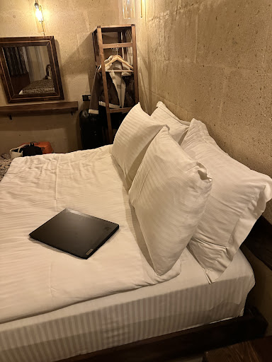 Konaklama Deneyimi: Otele adım attığımız ilk andan itibaren, sıcak bir karşılama ile kendimizi evimizde gibi hissettik. Odalar son derece geniş, temiz ve modern şekilde dekore edilmişti. Yataklar çok rahattı, odada ihtiyacımız olan her şey düşünülmüştü. Güneşin batışını seyrederken Kapadokya’nın eşsiz manzarasına karşı konaklamak gerçekten büyüleyiciydi. Ayrıca otelin mimarisi, bölgenin doğal yapısı ve tarihi dokusuyla uyum içindeydi, bu da orada geçirdiğimiz zamanı daha anlamlı kıldı.